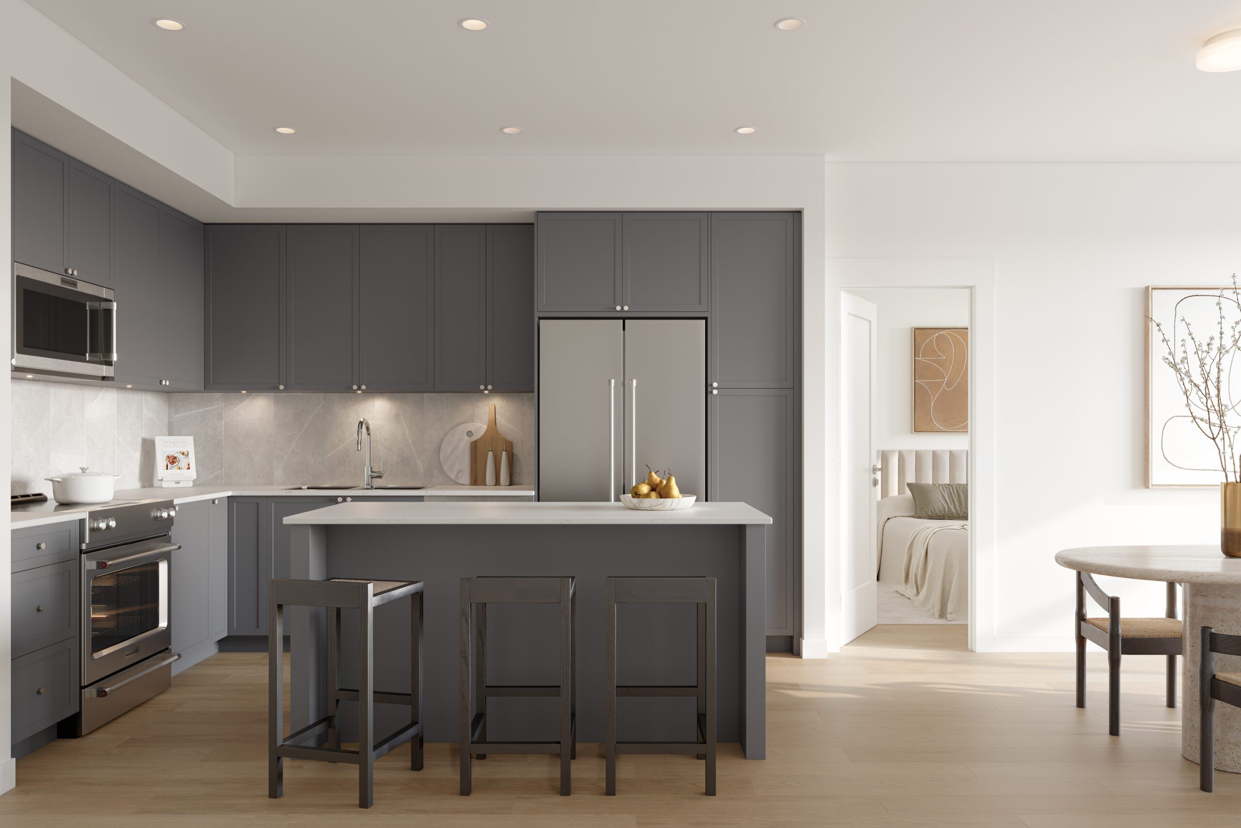 - Contemporary open living spaces with durable Transcend waterproof laminate flooring